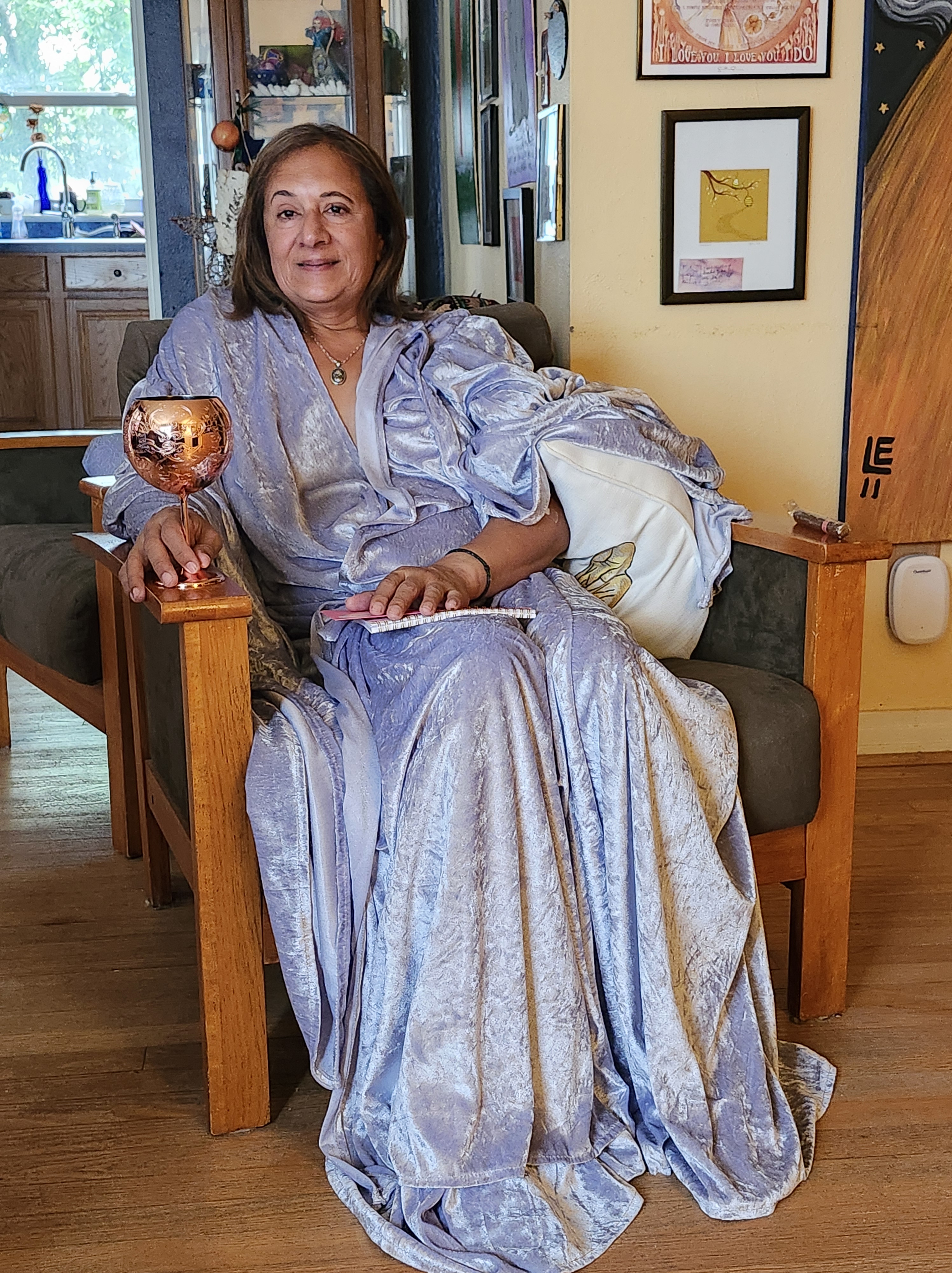 Select images are of Heather following her transformation ritual, when she was initiated as a Priestess of Artemis and into the mysteries of womanhood; Heather in the Blue Ridge Mountains at the home of dear friends; Heather in front of her bedroom window overlooking Fernandina Beach; Heather in her “Derby” Hat; and Heather and Me at dinner with friends in College Park.